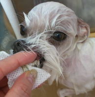 モモちゃん、炭酸泉ドッグバスで被毛がピカピカ!!